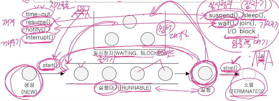 | 실행 대기 | RUNNABLE | 실행 상태로 언제든지 갈 수 있는 상태 |