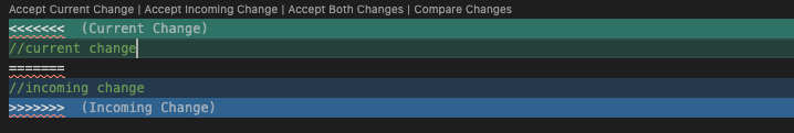 > incoming change과 current change 을 결정해서 해결해야 한다.