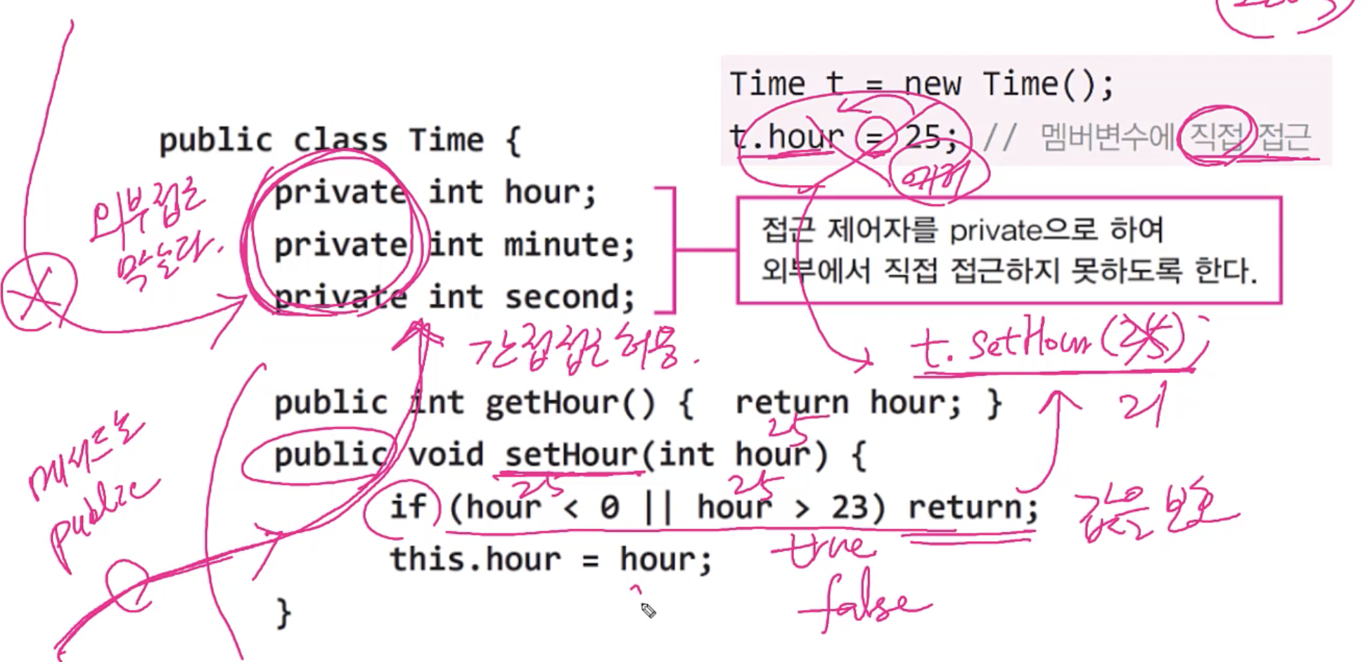 아래와 같은 방식으로 캡슐화하여 메서드로 간접접근을 하게 한다.