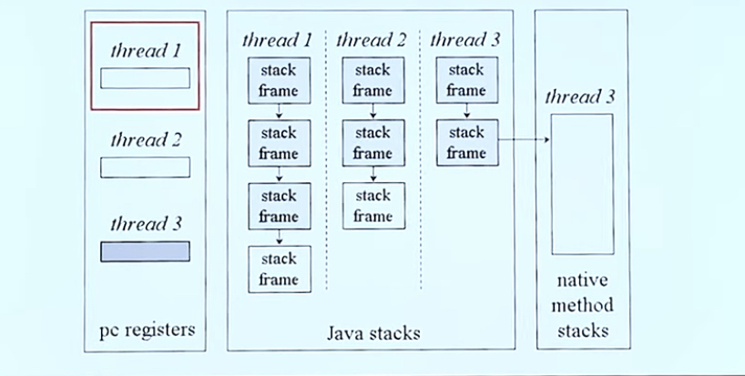 - Stack, PC Register, Native 매소드 Stack : 쓰레드 마다 존재