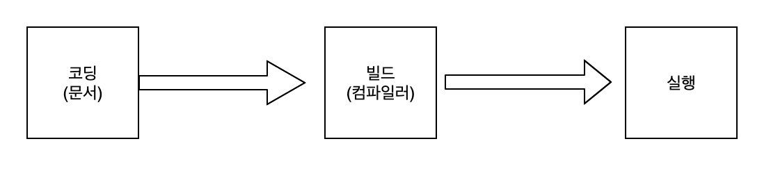 프로그래머가 코딩으로 작성한 문서를 컴파일러 과정의 빌드를 거쳐 바로 실행이 가능한 실행파일이 만들어집니다.